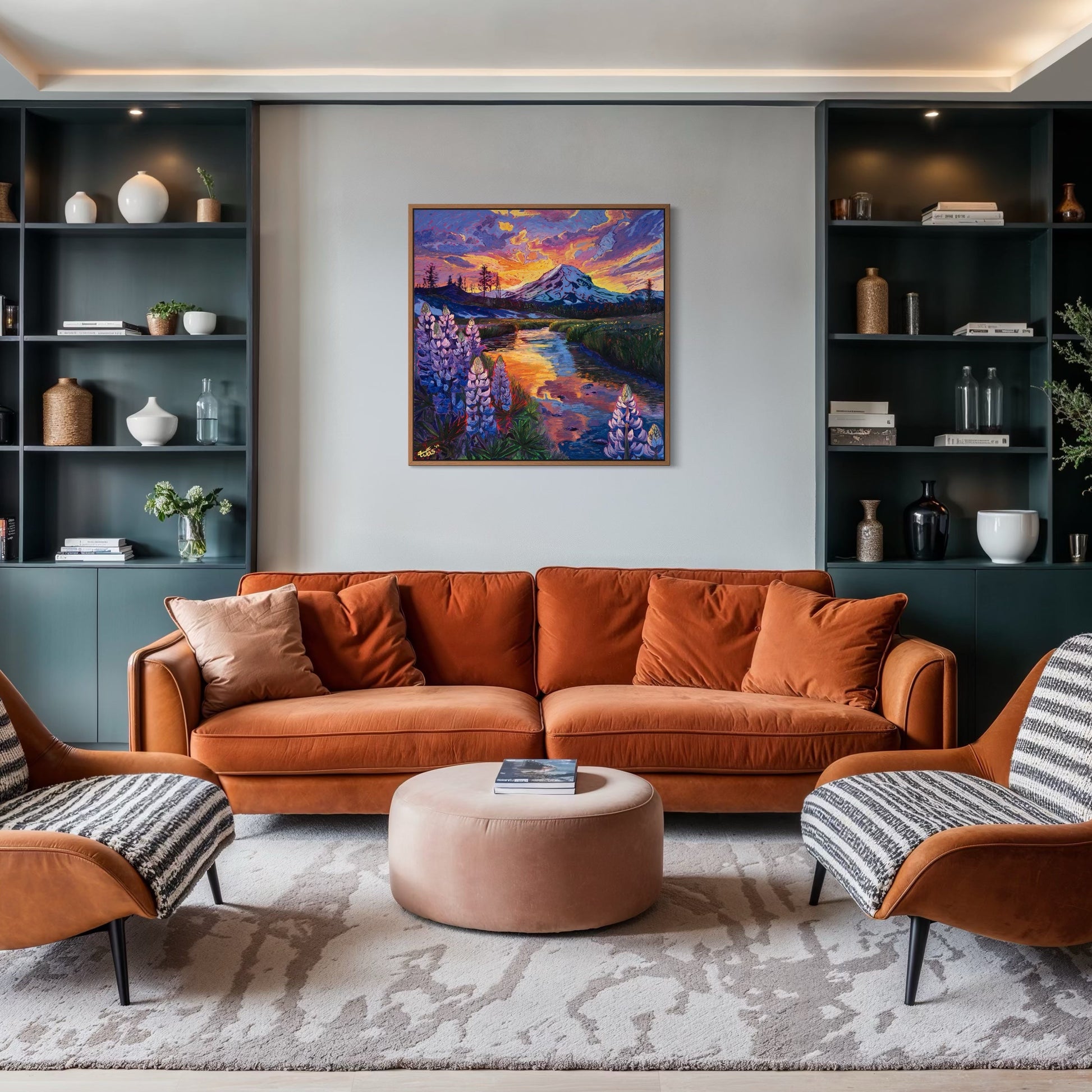Painted on archival-quality, stretched cotton canvas. The edges are finished in black, creating a sleek, contemporary border that frames the composition without the need for external hardware.